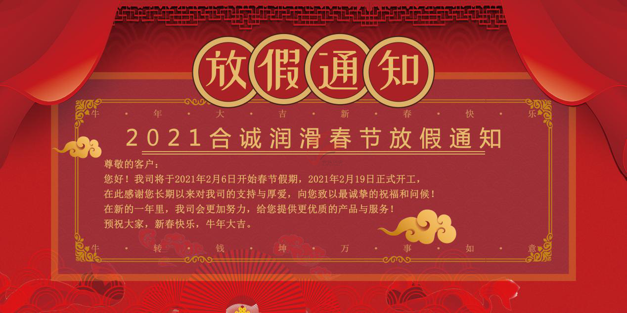 2021年1月18日,国内特种高级环保香蕉视频免费在线(脂)厂家91香蕉视频APP下载润滑依据国务院公布的《全国年节及纪念日放假办法》并结合其公司实际情况,公布了2021年春节放假时间安排。